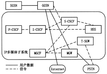 SIP信令消息從移動(dòng)用戶發(fā)起,經(jīng)UMTS(universalmobiletelecommunicationssystem,通用移動(dòng)通信系統(tǒng))陸地?zé)o線接入網(wǎng)絡(luò)進(jìn)入核心網(wǎng),通過(guò)SGSN(serving