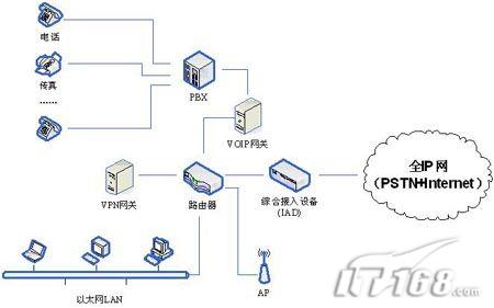 圖6 未來(lái)Internet和PSTN融合企業(yè)網(wǎng)絡(luò)體系