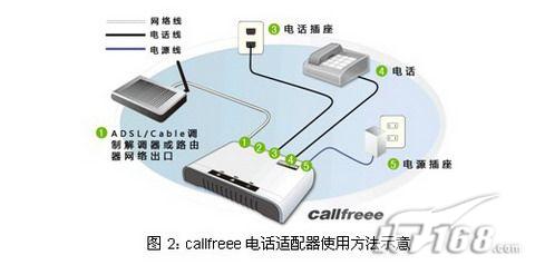 這不僅僅意味著用戶不需要高價購買設備,不需要支付任何的月租費,更重要的是用戶不需要擔心設備廠商服務質(zhì)量下降甚至中斷設備的使用。而且callfreee電話適配器配置完成以后使用方式非常簡單,用戶不需要更換電話機、變更電話號碼和和撥號方式,使用方法如下圖所示: