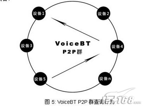 P2P群查找,VoiceBT群查到第4號設備有第1號設備的新的IP地址定位信息, 第5號設備則通過第4號設備找到第1號設備。