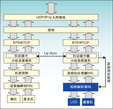 IP語音通話需要一些功能和處理的融合。此外,對于用戶接口和應(yīng)用層來說,這些處理包括通話控制、語音編解碼、回波消除和抖動緩沖。IP可視通話又增加了一些額外的要求,主要包括視頻編/解碼,色彩顯示緩沖和管理以及語音/視頻(A/V)流同步。其結(jié)果是需要一個復(fù)雜的和協(xié)調(diào)的組合功能,包括大量的控制功能,還有原始數(shù)據(jù)處理以及復(fù)雜的功率管理方法。適合于某種處理應(yīng)用的最佳架構(gòu)未必就是另一種應(yīng)用的最佳,于是迫使設(shè)計師必須采取一些系統(tǒng)折衷。