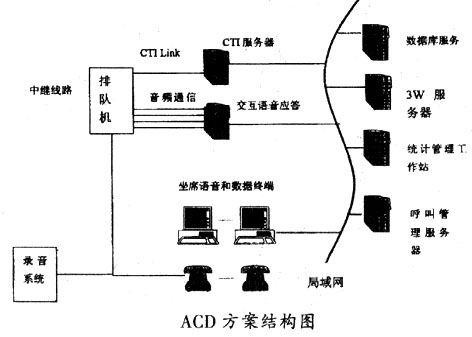____提供ACD方案的廠商傳統(tǒng)上是生產(chǎn)程控交換機的廠商。80年代以來,交換機廠家采取 了以下發(fā)展策略:在增強路由能力的基礎(chǔ)上開放交換機的控制接口,以標(biāo)準(zhǔn)的軟、硬件格 式提供CTI-Link,集成成熟的語音產(chǎn)品作為語音服務(wù)平臺。因此,ACD方案走的是一條基于 CTI-Link標(biāo)準(zhǔn)、專業(yè)通信和計算機廠家利用各自優(yōu)勢分工合作的路。
