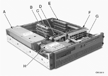 2. 卸掉頂蓋,找到服務器板卡上后備電池的位置(參見圖5-8);