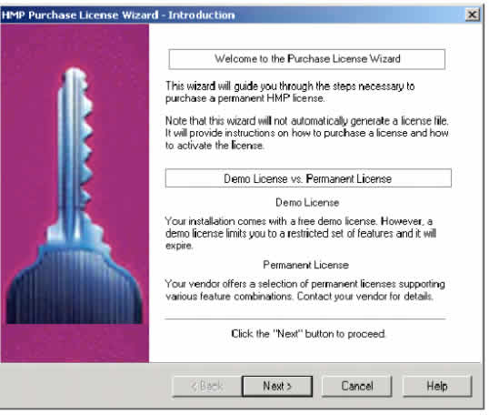 2. 在HMP許可證管理器窗口中(圖16),點 How to Purchase License...按鈕。HMP購買許可證導航將出現(圖17)。該向導將一步步指導你購買一個永久的HMP許可證。